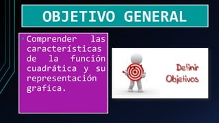 Este documento trata sobre las funciones cuadráticas. Explica las características de las funciones cuadráticas y cómo graficarlas, incluyendo los diferentes tipos de gráficas que pueden tener. Luego, presenta ejemplos y ejercicios para que los estudiantes apliquen los conceptos aprendidos.