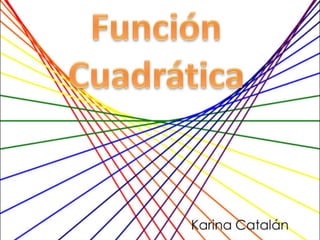 La función cuadrática se representa como f(x) = ax² + bx + c, formando una parábola cuya concavidad depende del signo del coeficiente 'a'. Las raíces de la función se determinan a través del discriminante y pueden ser reales distintas, idénticas o inexistentes. Además, se puede calcular el eje de simetría y el vértice de la parábola para su análisis gráfico.