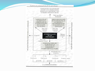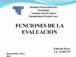 Este documento discute las funciones de la evaluación educativa. Explica que la evaluación revela parte del currículum oculto del profesorado y regula el proceso de enseñanza-aprendizaje. También cubre diferentes tipos de evaluación como la diagnóstica, formativa y sumativa. Finalmente, destaca la importancia de la autorregulación de los aprendizajes y la evaluación como eje central del currículo.