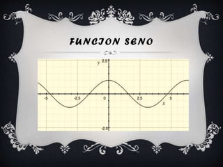 El documento describe las funciones seno y coseno, incluyendo sus gráficas, variables dependientes e independientes, dominios y rangos. La función seno tiene un rango de -1 a 1 y cuatro cuadrantes definidos por los grados 0-90, 90-180, 180-270 y 270-360. La función coseno también tiene un rango de -1 a 1, con x como la variable independiente y y como la dependiente.