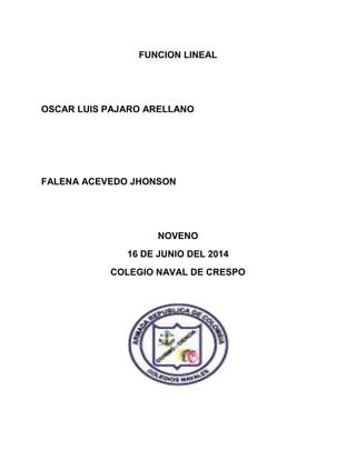 La función lineal es una función cuyo dominio y codominio son números reales y cuya expresión es un polinomio de primer grado de la forma f(x)=mx+b. La pendiente m y el punto de corte b determinan la inclinación y posición de la recta representativa de la función. Las funciones lineales tienen incrementos proporcionales y pueden ser crecientes, decrecientes o constantes dependiendo del signo de m.