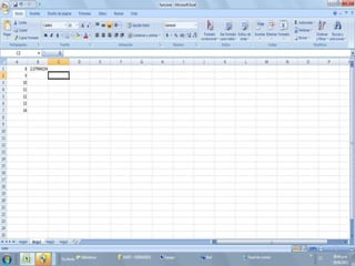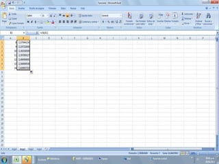 Este documento explica las funciones exponencial y logarítmica natural en Excel. La función exponencial calcula e elevado a una potencia usando la fórmula EXP(). La función logarítmica natural calcula el exponente al que se debe elevar e para obtener un número usando la fórmula LN(). El documento proporciona ejemplos de cómo usar estas funciones en Excel y ejercicios de práctica.