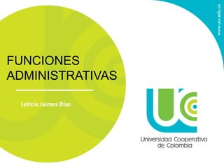 Este documento describe las funciones administrativas de planeación, organización, dirección y control. Explica que la planeación determina objetivos y cómo alcanzarlos, la organización establece la estructura para asignar recursos de manera racional, la dirección se enfoca en el liderazgo y toma de decisiones para implementar lo planeado, y el control mide el desempeño y establece medidas correctivas. También presenta los tipos y etapas de la planeación, así como los elementos clave de la dirección y la importancia del control.