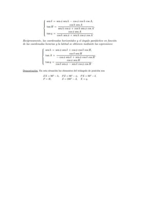 Este documento describe tres sistemas de coordenadas: coordenadas cartesianas, cilíndricas y esféricas. Explica que cada sistema utiliza números para identificar puntos en el espacio y describe las coordenadas, líneas y superficies de cada sistema. También resume las transformaciones entre los sistemas de coordenadas y describe el sistema de coordenadas polares, incluida su simetría.