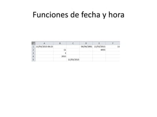 Excel incluye varias funciones para trabajar con fechas, texto y buscar información como funciones de fecha y hora, funciones de texto, funciones que buscan y otras funciones adicionales.