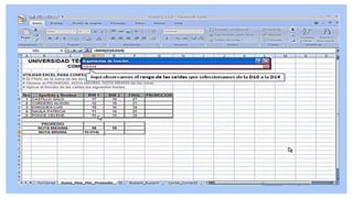 Este documento proporciona información sobre varias funciones estadísticas en Excel, incluyendo CONTAR, CONTARA, CONTAR.SI, MAX, MIN, MEDIANA, MODA y BUSCAR. Explica la sintaxis y los argumentos de cada función, y proporciona ejemplos para ilustrar su uso.