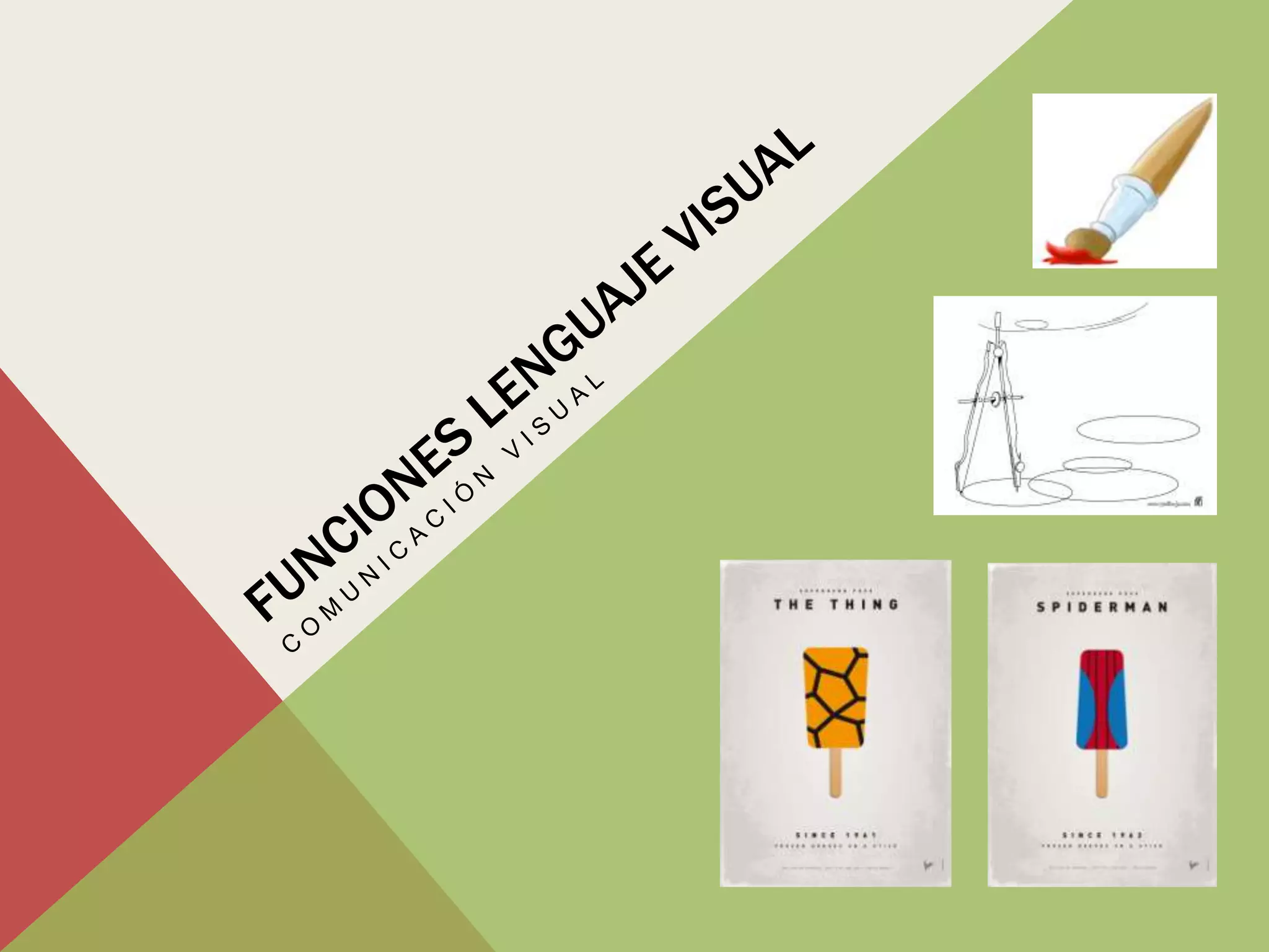 La comunicación visual es un proceso de elaboración, transmisión y recepción de mensajes a través de imágenes. El significado es el sentido, real o simbólico, que tiene un mensaje visual, mientras que el significante es el contenido visual de la imagen. Las imágenes pueden tener diferentes finalidades como ser informativa, exhortativa, recreativa, estética o expresiva dependiendo del propósito que se persiga al crearla.