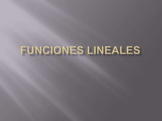 El documento describe 5 funciones lineales con sus dominios, recorridos e interceptos. Cada función presenta su ecuación, dominio igual a R, recorrido igual a R, y los valores de x e y cuando la función es igual a 0 para encontrar los interceptos con los ejes.