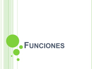 Este documento describe las funciones y algunos de sus conceptos fundamentales. Define una función como una relación que asigna un único elemento de un conjunto B a cada elemento de un conjunto A. Explica los conceptos de dominio, rango, función creciente, decreciente e inyectiva, epiyectiva y biyectiva. Además, describe las funciones lineales y cuadráticas, incluidas sus propiedades y cómo representarlas gráficamente.