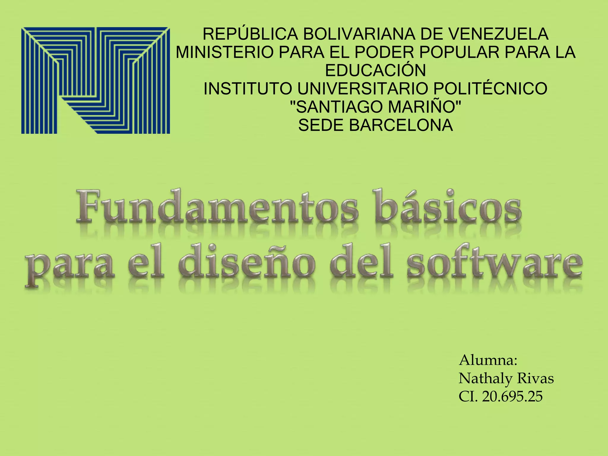 Este documento resume los fundamentos del diseño de software, incluyendo la abstracción, refinamiento, modularidad, arquitectura, jerarquía de control y estructura de datos. Explica que el diseño de software permite producir modelos del sistema que pueden evaluarse y mejorarse antes de codificar.