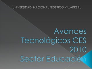 El CES 2010 presentó avances tecnológicos en libros electrónicos, tablets y USB 3.0 para el sector educación. Se mostraron nuevos lectores de libros electrónicos y prototipos de tablets como la AsusEeePad. También se promocionó USB 3.0, una nueva versión 10 veces más rápida que USB 2.0 ya disponible en algunas laptops.