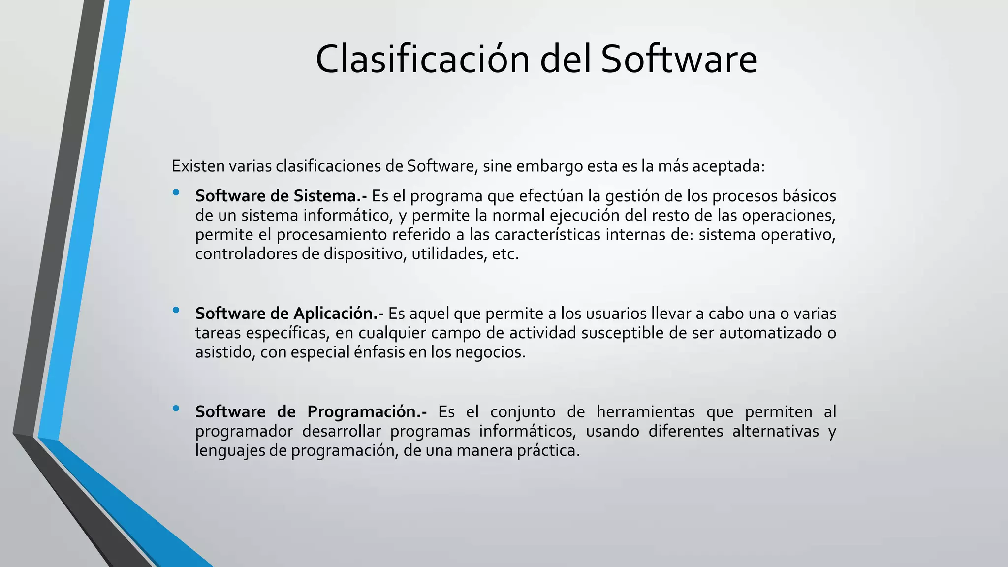 El documento clasifica y describe diferentes tipos de software. Identifica tres tipos principales de software: software de sistema, software de aplicación y software de programación. También proporciona ejemplos de sistemas operativos, utilidades y aplicaciones comunes.
