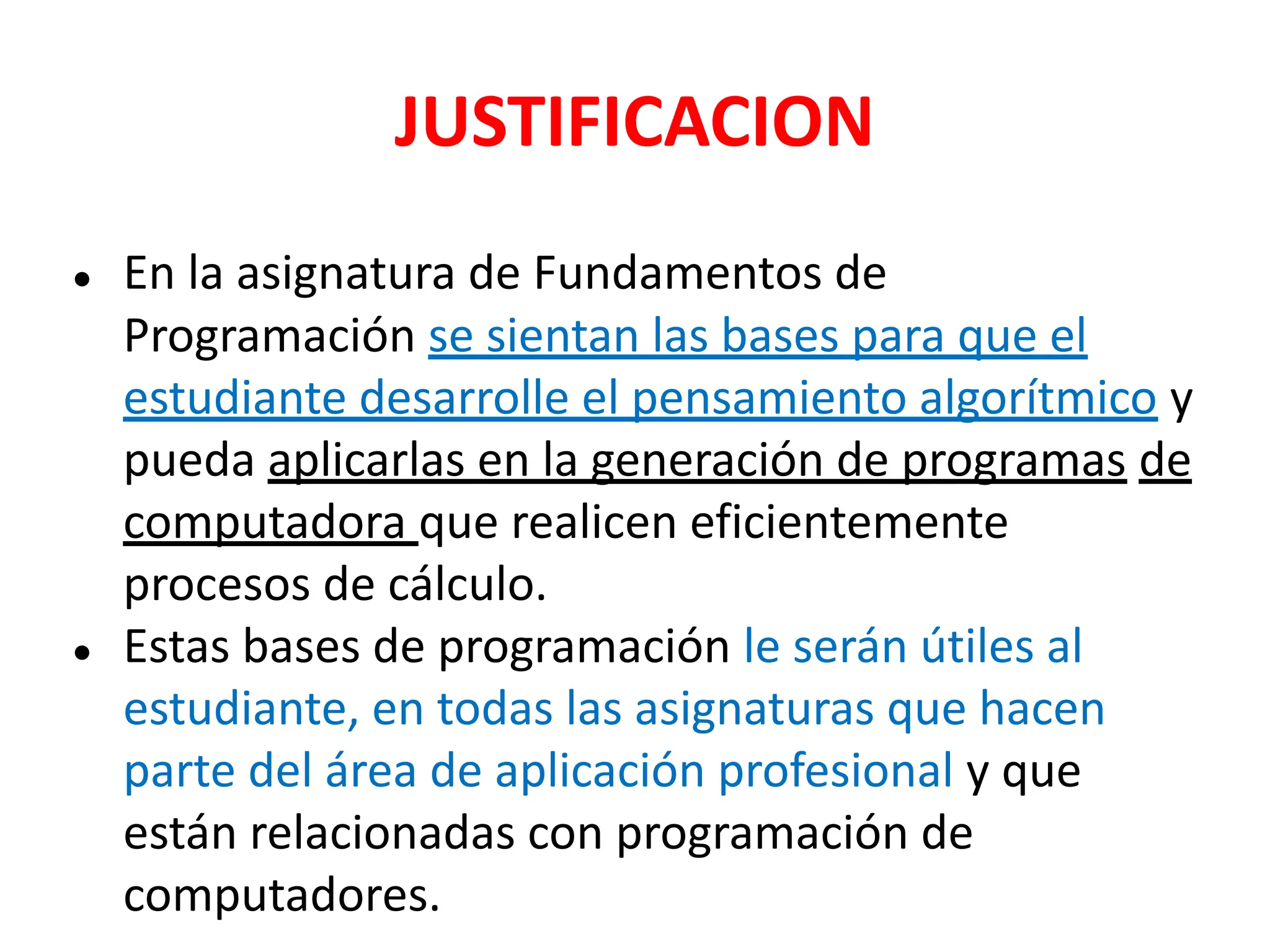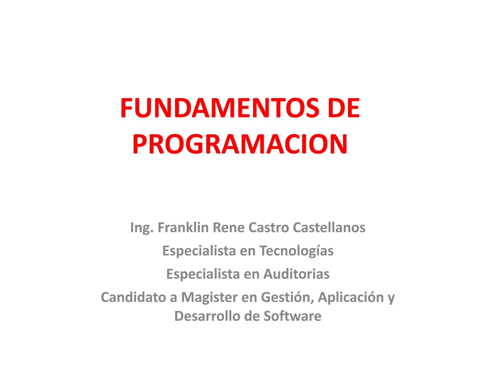 Esta presentación aborda los fundamentos esenciales de la programación, enfocándose en la comprensión de conceptos clave como variables, tipos de datos, operadores, estructuras de control (condicionales y bucles) y funciones. Se incluyen ejemplos prácticos y ejercicios que permiten aplicar la teoría en situaciones reales de programación. El objetivo es que los estudiantes desarrollen habilidades básicas de codificación, lógica computacional y resolución de problemas mediante la construcción de programas simples pero funcionales. Además, se enfatiza la importancia de seguir buenas prácticas de programación, como la claridad en el código, la modularidad y la correcta documentación, sentando así las bases para avanzar en cursos más avanzados de desarrollo de software y algoritmos.