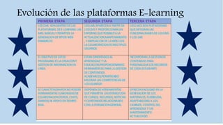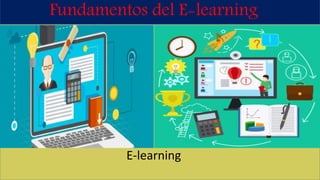 El documento describe los fundamentos del e-learning, incluyendo sus características principales como la responsabilidad del aprendizaje que recae en el estudiante y que requiere disciplina y compromiso. También discute las ventajas como la flexibilidad y actualización de la información, y las desventajas como la necesidad de habilidades para el aprendizaje autónomo y la posible baja calidad. Finalmente, enfatiza que el e-learning no es simplemente transferir contenidos de forma presencial a lo digital, sino encontrar la combinación adecuada