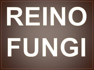 Los hongos son organismos eucariotas heterótrofos que carecen de clorofila y se reproducen de forma sexual y asexual, formando esporas. Pertenecen a su propio reino y presentan tres modos de nutrición: saprobios, parásitos y simbiontes. Su estructura básica son las hifas que forman el micelio.