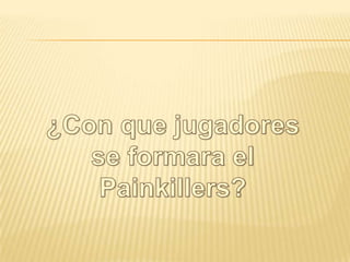 Este documento describe una propuesta para crear un nuevo equipo de cantera llamado "Painkillers" formado por jugadores de los equipos UD Monsters y Painkillers B con niveles a partir de 4000. El objetivo es que ambos equipos mejoren sus instalaciones y jugadores para convertirse en los 8-9 mejores equipos del servidor. Los jugadores podrán moverse entre los equipos UD Monsters y Painkillers dependiendo de su rendimiento.