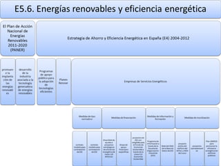 El documento describe varios planes y estrategias para reforzar sectores estratégicos en España, incluyendo el sector aeroespacial, biotecnología, tecnologías sanitarias y farmacéuticas, TIC y contenidos digitales, y agroalimentación. Los planes proporcionan financiamiento para I+D, creación de empresas, internacionalización, y mejoras en la competitividad para impulsar estos sectores importantes. Organismos como el MICINN, el MITYC, y el Ministerio de Medio Ambiente y Mar Rural apoyan