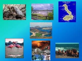 Este documento describe brevemente las principales características de las 15 islas del archipiélago de Galápagos. Cada isla se destaca por su ubicación, flora, fauna y lugares turísticos notables. Las islas más grandes son Isabela, San Cristóbal y Santa Cruz, mientras que las más pequeñas son Darwin y Wolf. Todas las islas poseen ecosistemas únicos que albergan especies endémicas en vías de extinción.
