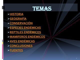Las islas Galápagos son famosas por albergar numerosas especies endémicas únicas y por haber sido objeto de estudio de Charles Darwin, que le llevaron a establecer su teoría de la evolución. Las islas cuentan con flora y fauna prácticamente única en el mundo y son un destino turístico reconocido internacionalmente por su belleza natural.