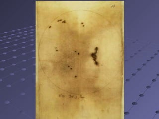 El documento resume la vida y logros del astrónomo y físico Galileo Galilei. Nació en 1564 en Pisa y construyó el primer telescopio en 1609, con el cual descubrió cráteres en la Luna, cuatro satélites de Júpiter y manchas solares, desafiando las teorías medievales. Sus teorías heliocéntricas fueron condenadas por la Iglesia y él fue denunciado y condenado por la Inquisición, muriendo en 1642.