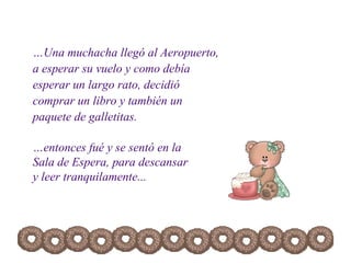 Una mujer en el aeropuerto se enojó cuando un hombre tomó galletas de un paquete que ella creía que eran suyas, pero resultó que ella tenía sus propias galletas intactas en su bolso todo el tiempo. Ella se dio cuenta de que había juzgado erróneamente la situación y al hombre, y que a menudo sacamos conclusiones apresuradas sobre los demás.