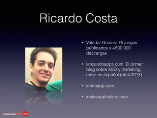 El documento presenta estrategias para monetizar aplicaciones móviles, destacando modelos de negocio como el freemium y la importancia del tráfico y la conversión. Se discuten métodos de optimización en la App Store, incluyendo la adquisición de usuarios y el uso de datos analíticos para mejorar la visibilidad de las aplicaciones. También se abordan oportunidades de mercado y la necesidad de adaptarse rápidamente a las tendencias para maximizar el crecimiento.