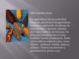 La cultura maya alcanzó su mayor esplendor entre los años 300 y 900 d.C., cuando 2 millones de mayas vivían en ciudades poderosas como Caracol y Xunantunich en lo que hoy es Belice. Los mayas practicaban la agricultura extensiva cultivando maíz, yuca, cacao y otros productos, y también eran recolectores y pescadores. Destacaron en el arte, desarrollando la pintura y la escultura, y crearon un complejo calendario basado en un año de 365 días. Su religión politeí