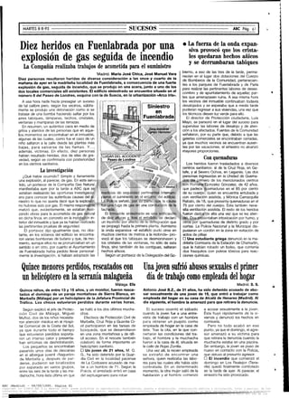 Una explosión de gas seguida de un incendio en Fuenlabrada, Madrid causó 10 heridos. Dos personas sufrieron quemaduras graves. La compañía de gas estaba realizando trabajos de acometida en el edificio cuando ocurrió la explosión. La investigación está en curso para determinar la causa exacta.