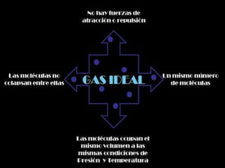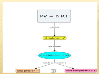 Este documento presenta la información sobre los gases ideales. Detalla los integrantes del equipo que realizó el estudio y explica que un gas ideal es un gas hipotético que permite hacer cálculos matemáticos más sencillos al asumir que las moléculas no ocupan volumen y no interactúan entre sí. También contrasta las propiedades de los gases ideales con los gases reales y presenta ejemplos de cálculos utilizando la constante universal de los gases.