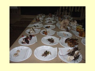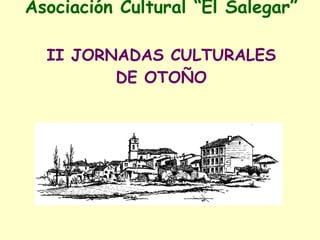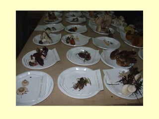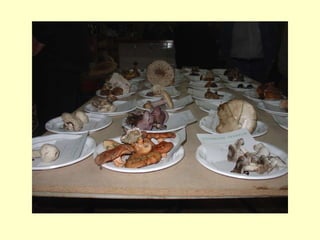 Este documento anuncia las Segundas Jornadas Culturales de Otoño de la Asociación Cultural "El Salegar" sobre gastronomía de setas. Incluye una lista de diferentes tipos de setas y hongos, así como varios platos que se servirán que incluyen setas y hongos como ingredientes principales. También incluye dos citas sobre los placeres de la gastronomía de setas.