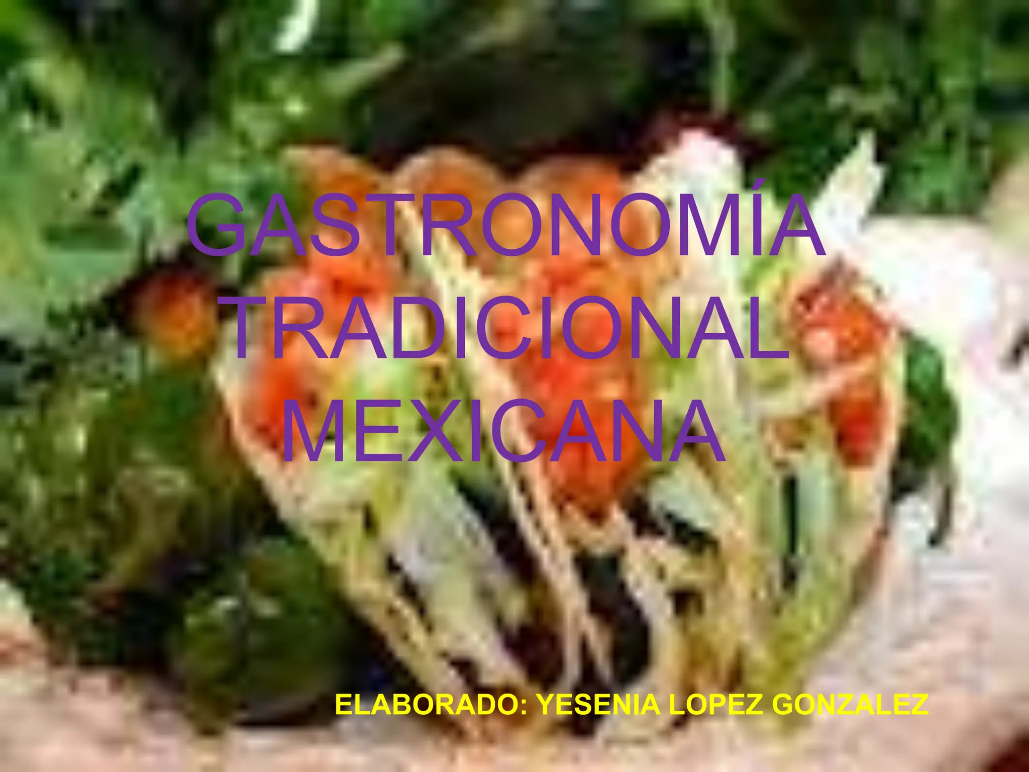 La gastronomía mexicana se caracteriza por su gran variedad de platillos y recetas con sabores distintivos y complejos, siendo el maíz, los frijoles, el chile y otros ingredientes la base de su cocina. Su historia se remonta a 10,000 años cuando se domesticó el maíz para convertirse en el cultivo principal de las culturas mesoamericanas. Cada estado de México posee sus propias tradiciones culinarias. El Conservatorio de la Cultura Gastronómica Mexicana busca preservar las raíces e ident