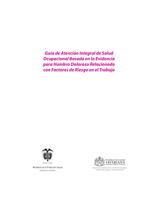 Este documento presenta una guía de atención integral de salud ocupacional basada en evidencia para el hombro doloroso relacionado con factores de riesgo en el trabajo. Explica que los desórdenes músculo esqueléticos son la principal causa de morbilidad profesional en Colombia, afectando principalmente el miembro superior y la columna vertebral. La guía fue desarrollada siguiendo los principios de la medicina basada en evidencia para proveer recomendaciones integrales sobre prevención, diagnóstico, tratamiento y re