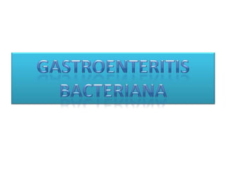 La gastroenteritis puede ser de origen vírico o bacteriano. La gastroenteritis vírica es causada por retrovirus y el virus Norwalk y se transmite por el consumo de alimentos almacenados a temperatura ambiente después de cocinarse, causando síntomas como náuseas, vómitos y diarrea. La gastroenteritis bacteriana es causada por bacterias como Salmonella y Shigella que ingresan al cuerpo por el consumo de alimentos contaminados y almacenados incorrectamente, lo que genera dolor abdominal, cólicos y diarrea sanguinolenta.