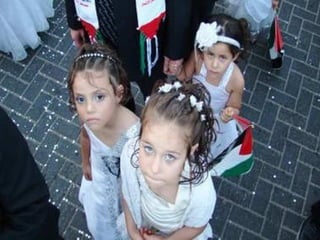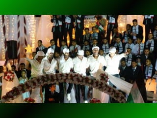 El documento describe un matrimonio masivo en Gaza donde 450 novios se casaron con niñas menores de 10 años. Luego discute la práctica del profeta Mahoma de casarse con Aisha cuando ella tenía solo 6 años, y sugiere que esto aún es seguido por algunos musulmanes. Finalmente, cita al ayatollah Khomeini apoyando la pedofilia y el matrimonio infantil.