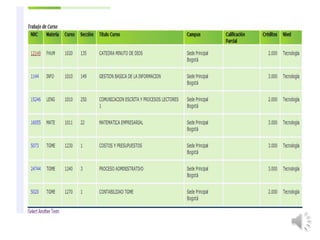 La universidad busca formar profesionales competitivos a través de una educación de calidad y valores cristianos, con la presencia de Dios en los estudiantes. Para el 2012, la universidad espera tener varias sedes y estar relacionada a nivel nacional e internacional. El documento también incluye enlaces para acceder al reglamento de la universidad y para inscribir materias.