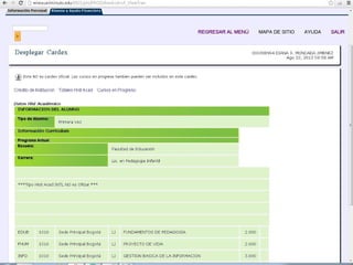El documento contiene una lista de integrantes de un grupo y luego menciona varios temas relacionados con el horario de clases, calificaciones parciales, calificaciones finales, la sabana de notas e inscripción de materias de los estudiantes.