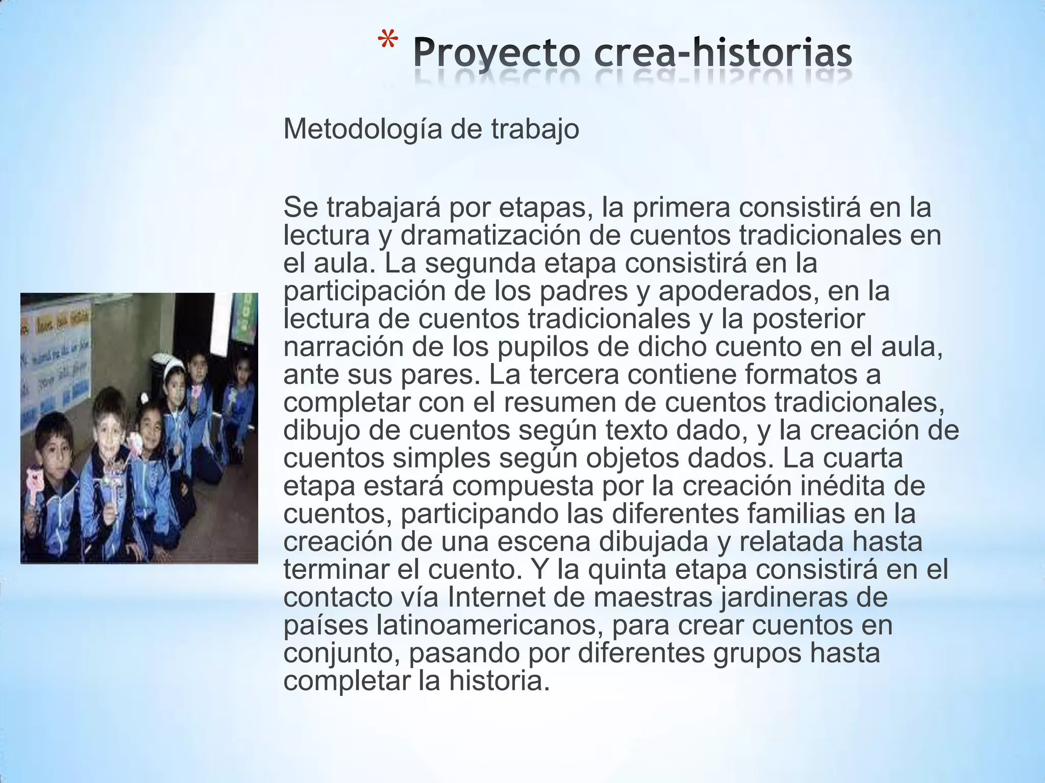 El documento contiene información sobre varios proyectos educativos relacionados con el desarrollo del lenguaje en niños y la creación de cuentos. Los proyectos utilizan actividades como la lectura, dramatización y creación de cuentos para promover el lenguaje y la imaginación en niños. Un proyecto también propone el uso de música para motivar el desarrollo del lenguaje en niños de 2 a 4 años.