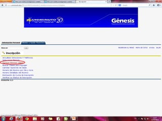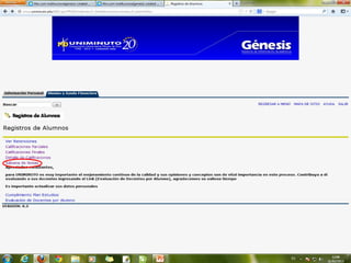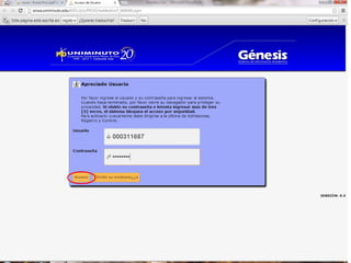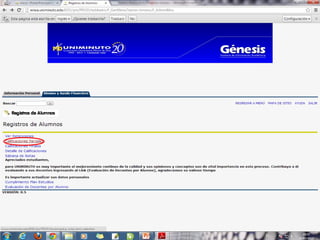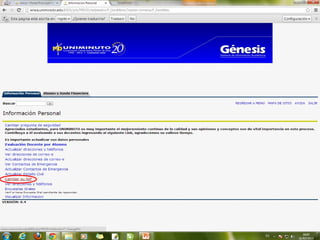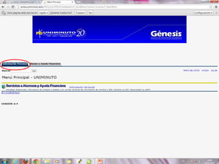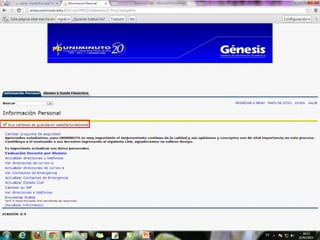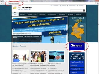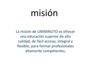 La misión de UNIMINUTO es ofrecer una educación superior de alta calidad, accesible y flexible para formar profesionales competentes. Su visión es ser conocido por las experiencias espirituales en el ámbito universitario, su impacto a través de múltiples sedes, y sus relaciones nacionales e internacionales. El documento también describe los derechos y deberes de los estudiantes, así como las políticas de inasistencia y uso del portal Génesis.