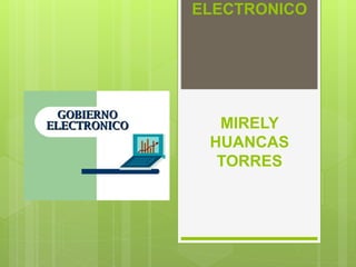 El documento define el gobierno electrónico como una nueva forma de interacción entre los gobiernos y sus ciudadanos usando tecnologías de información. Describe sus características principales como el uso de TICs y la optimización de recursos. También resume sus ventajas como la desburocratización, eficiencia y mejor contacto con ciudadanos, así como sus desventajas como deficiencias en infraestructura. Finalmente, explica sus fases y modelos de interacción clave.