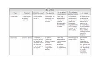 Este documento presenta información sobre varios aspectos del sector de servicios a nivel mundial y regional. Resume los principales flujos comerciales y de turismo mundiales, y analiza la composición y evolución del sector terciario en la Unión Europea, España y Extremadura. Incluye mapas y estadísticas sobre el comercio, transporte, educación, turismo y tecnologías de la información en diferentes regiones.