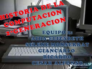 La segunda generación de computadoras utilizó transistores en lugar de bulbos, lo que permitió computadoras más pequeñas, rápidas y eficientes energéticamente. Se programaban en nuevos lenguajes como FORTRAN y se usaban para aplicaciones como reservaciones aéreas y simulaciones. Inventos como los discos duros y los primeros compiladores permitieron un almacenamiento y programación más efectivos.