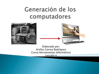 Este documento describe las cinco generaciones de computadoras desde la primera hasta la quinta generación. La primera generación utilizaba válvulas al vacío y se usaban para aplicaciones científicas y militares. La segunda generación reemplazó las válvulas por transistores y se expandió el uso a aplicaciones administrativas. La tercera generación introdujo los circuitos integrados y las minicomputadoras. La cuarta generación trajo los microprocesadores y las computadoras personales. La quinta generación se caracteriza por el uso de componentes VLSI, int