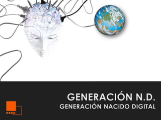 Este documento describe las diferencias entre los "nativos digitales" y los "inmigrantes digitales". Los nativos digitales son los jóvenes que han crecido con la tecnología digital y son expertos en ella, mientras que los inmigrantes digitales son las personas mayores que han adoptado la tecnología más tarde en la vida y siempre mantienen algo de su "acento" del pasado. El documento también discute cómo los nativos digitales están acostumbrados a recibir información rápidamente y les gusta la multitarea y los gráficos antes que el texto.