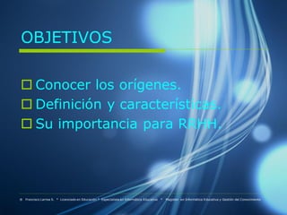Este documento describe las generaciones X, Y y Z, incluyendo sus orígenes, definiciones, características y su importancia para los recursos humanos. La generación X nació entre 1971-1985, la generación Y entre 1985-1992, y la generación Z después de 1992. Estas generaciones difieren en su uso de la tecnología y en sus actitudes hacia el trabajo y la vida personal. Las generaciones X e Y son importantes para los recursos humanos porque constituyen la mayor parte de la fuerza laboral actual.