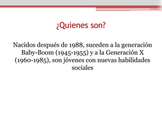 La Generación Einstein son jóvenes nacidos después de 1988 que se comunican principalmente a través de dispositivos móviles e internet y se caracterizan por ser optimistas, más listos y sociables, tener confianza en sí mismos y luchar por sus ideales. Se cree que lucharán de manera inteligente por cambiar el mundo usando su experiencia en encontrar información digital.