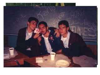 Este documento sin estructura aparente hace referencia a recuerdos de un grupo de estudiantes de 1996 sobre su último año de secundaria, incluyendo momentos buenos y malos como fútbol, llanto y fugas. También menciona un "legado a la patria" que dejaron al construir un muro y lista los nombres y apodos de los estudiantes.