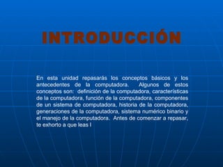 El documento describe las cinco generaciones de computadoras, desde las primeras computadoras de tubos de vacío en la primera generación hasta las computadoras basadas en inteligencia artificial en la quinta generación. Explica las tecnologías clave utilizadas en cada generación, como los transistores en la segunda generación y los circuitos integrados en la tercera generación, y cómo estas nuevas tecnologías permitieron computadoras más pequeñas, rápidas y eficientes en cada generación.