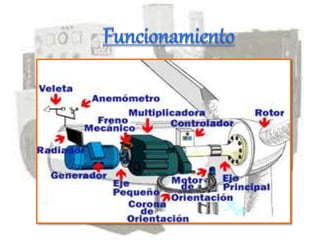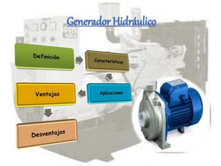 El documento describe los generadores eléctricos, su funcionamiento y aplicaciones, destacando la transformación de energía mecánica en eléctrica. Se mencionan diferentes tipos de generadores, como eólicos, diésel y de gasolina, así como sus ventajas y desventajas. Además, se abordan sus partes, características y uso en lugares aislados donde la conexión a la red eléctrica es difícil o costosa.