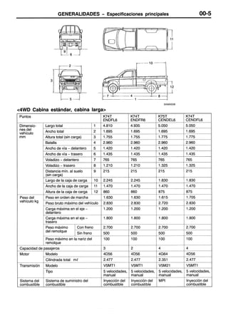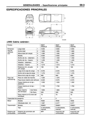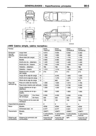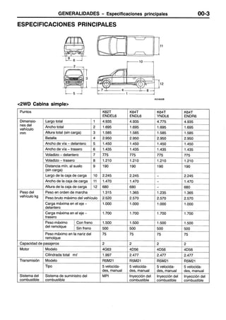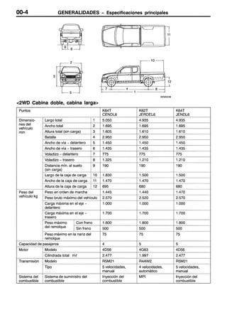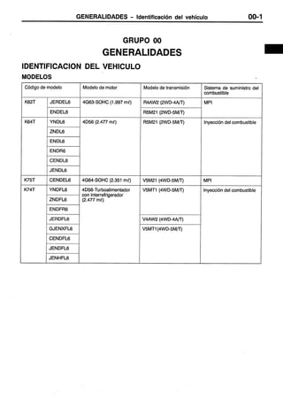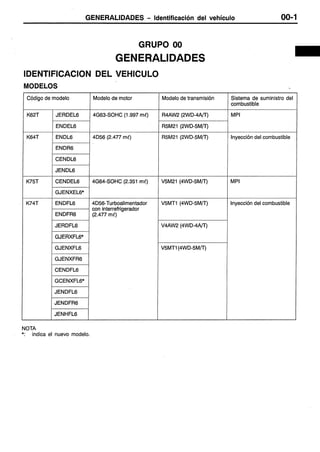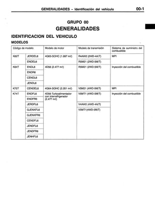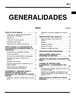 Este documento proporciona instrucciones sobre cómo usar un manual de servicio. Explica que el manual contiene procedimientos de inspección, mantenimiento y reparación para el vehículo, aunque para el motor y la transmisión solo incluye inspecciones y ajustes en el vehículo. También define términos como valores normales y límites, e indica cómo leer los procedimientos de inspección, códigos de diagnóstico y tablas de referencia.