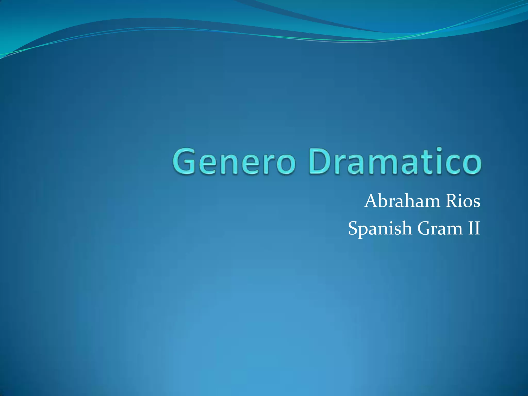 El documento habla sobre los diferentes tipos de géneros dramáticos como la tragedia y la comedia. La tragedia se centra en problemas de la vida real mientras que la comedia entretiene con la vida cotidiana. También menciona que las obras de teatro se dividen en actos, escenas y cuadros y que a los escritores de dramas se les llama dramaturgos.